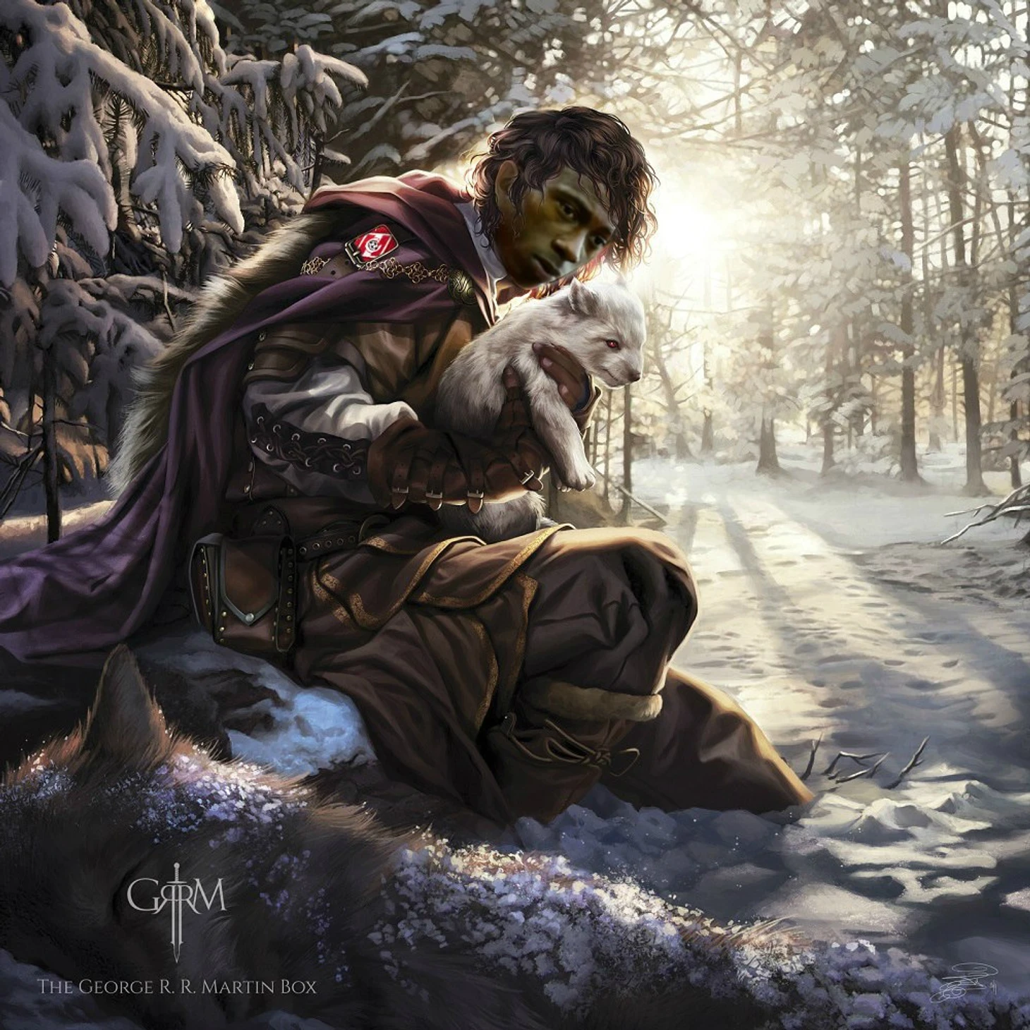 Джон Сноу со своим щенком-лютоволком Призраком.