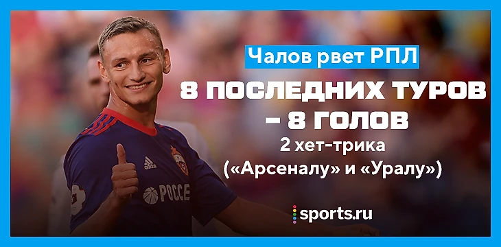 • Чалов забил 17 голов во взрослой карьере: из них 6 – «Арсеналу» и 4 – «Уралу». А за 8 последних туров (с учетом прошлого сезона) Федор забил 8 мячей.
