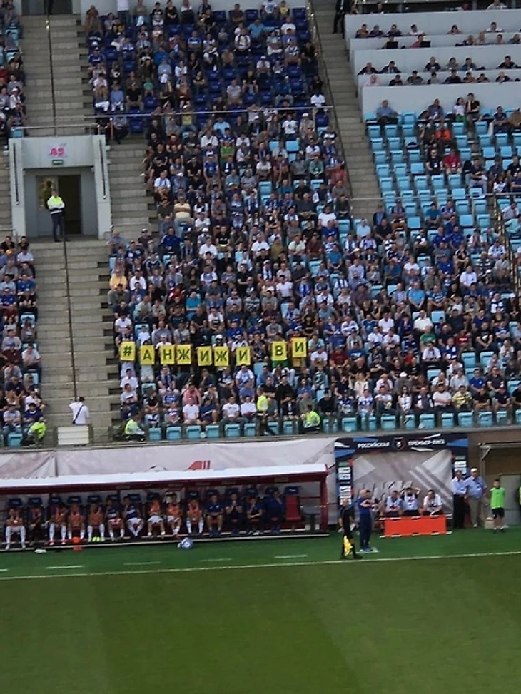 В первом тайме на секторе болельщиков московской команды случилась драка. Один из болельщиков пронёс на трибуну баннеры анжиживи в поддержку махачкалинского клуба, который испытывает финансовые проблемы, что не понравилось другим фанатам. После драки болельщики Динамо выкинули с трибуны баннеры в поддержку Анжи
