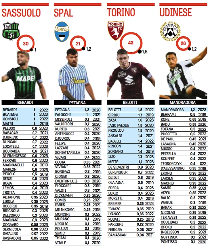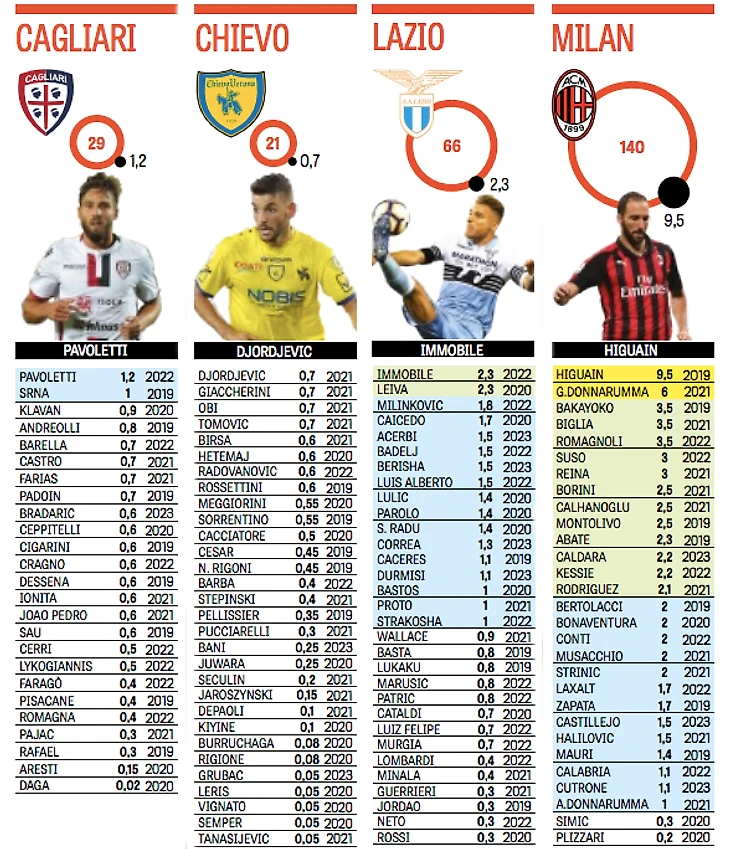 Ниже – зарплатные ведомости всех клубов Серии А.