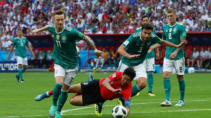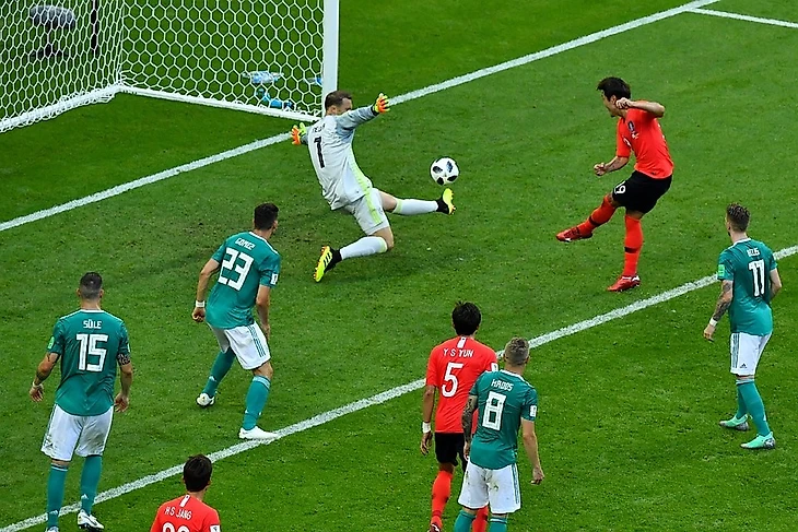 Сборная Германии на Чемпионате Мира 2018 года — это зазнавшийся чемпион, который на основании прошлых побед не воспринимает всерьез никого и подходит к спортивным состязаниям снисходительно. Судьба сборной Германии на Чемпионате Мира 2018 — это спортивная драма, в которой немцы — не главный герой, преодолевающий препятствия при восхождении на «олимп», а наоборот — антипод главного героя — зазнавшийся верзила, который ни во что не ставит соперника и думает о своем непоколебимом чемпионстве, как об очевидном факте. Несмотря на поражение в первом матче от мексиканцев и «отскок» в матче со шведами, чрезмерная заносчивость у команды Йоахима Лёва крепчала на глазах. В матче со сборной Южной Кореи, Германия выступала в роли Джеймса «Клаббера» Лэнгиза, из фильма Рокки 3, а корейцы в роли Рокки Бальбоа. Те, кто смотрел третью часть эпопеи Рокки, поймут это сравнение. Немцы владели мячом на протяжении всего матча, но на последних минутах, в духе голливудского кинофильма, корейцы сумели переломить ход встречи и забили гол на 90 минуте, а на 96 минуте, азиатская команда добила немцев. Сборная Южной Кореи радовалась этой победе так, словно она что-то значила для нее, и команда оказалась в 1/8 чемпионата мира по футболу. Это не удивляет, ведь до начала матча, в этой паре был явный аутсайдер — сборная Южной Кореи. Корейцев никто не воспринимал всерьез, даже сами немцы. К этому сопернику сборная Германии отнеслась снисходительно, из-за чего подопечные Йоахима Лёва проиграли тот матч и получили досрочную путевку в Германию.