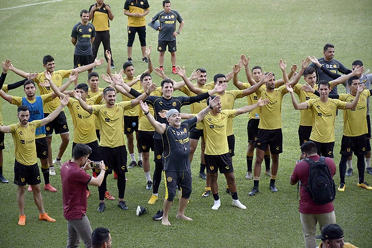 Марадона уже обозначил, что собирается играть в атакующий футбол. «Настроен побеждать, оборонительный стиль я не люблю. Я здесь, чтобы работать, отдать всего себя, как это было в Эль-Фуджайре (клуб из ОАЭ, который он возглавлял с мая 2017-го по апрель 2018-го – Sports.ru), где я проезжал 300 километров в день, чтобы тренировать парней. Люди, которые сотрудничают с нами, подтвердят, что мы хотим все сделать хорошо. Благодарен им за то, что выслушали мои идеи».