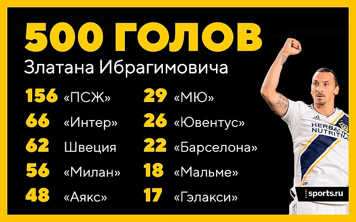 Ибра стал третьим из действующих игроков, кто достиг отметки в 500 голов (считаются голы за клубы и сборную). Больше только у Месси (621) и у Роналду (658).