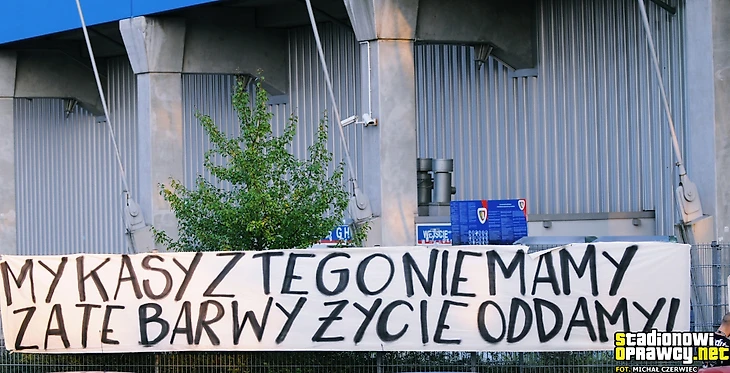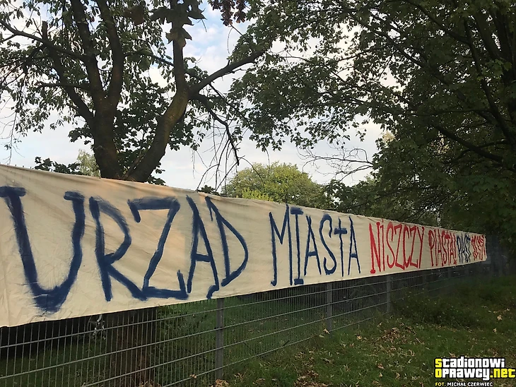 Не обошлось и без баннеров против руководства клуба и города. «Городские власти убивают «Пяст»...