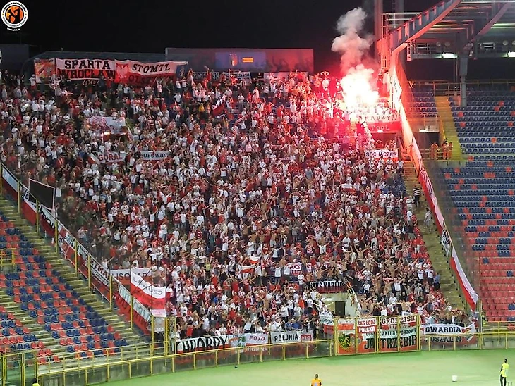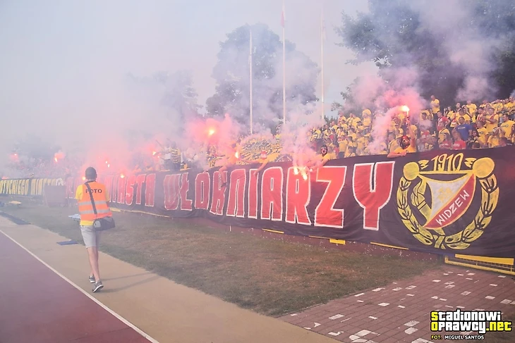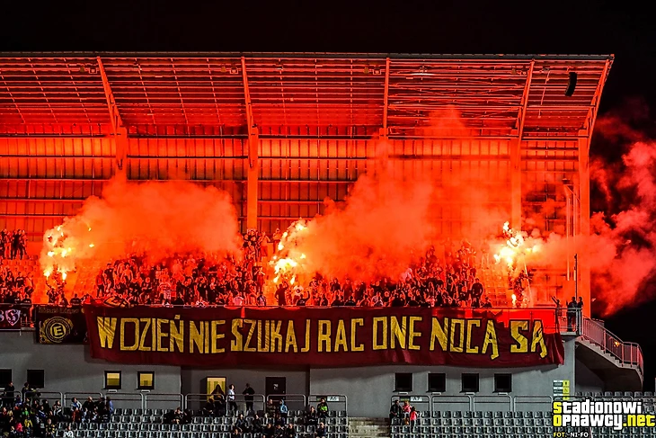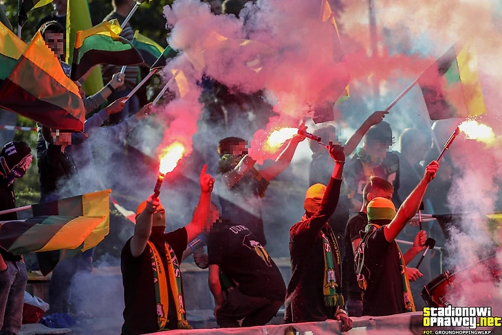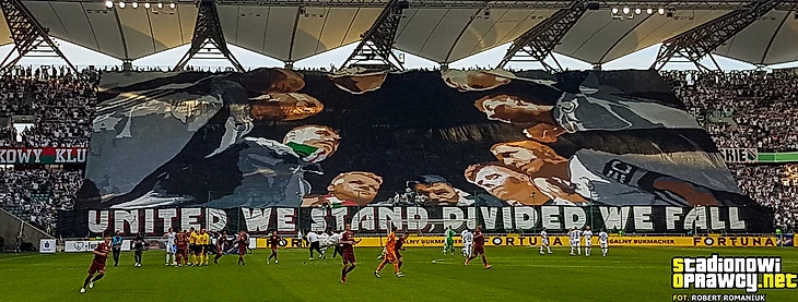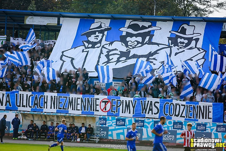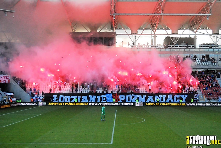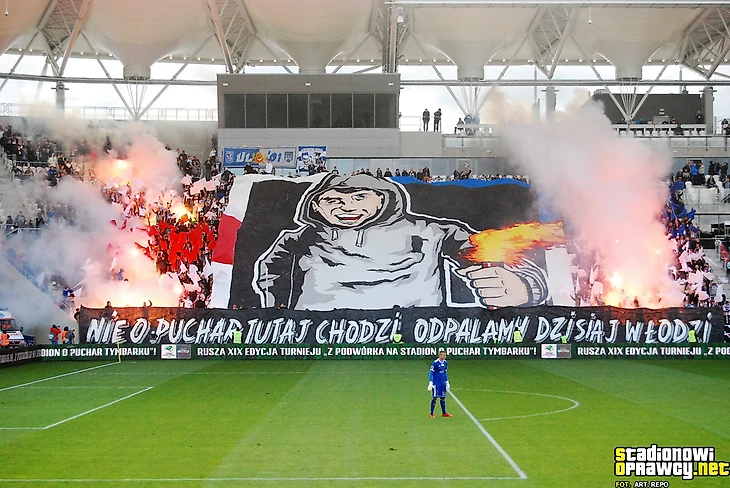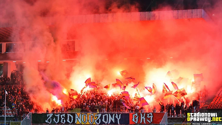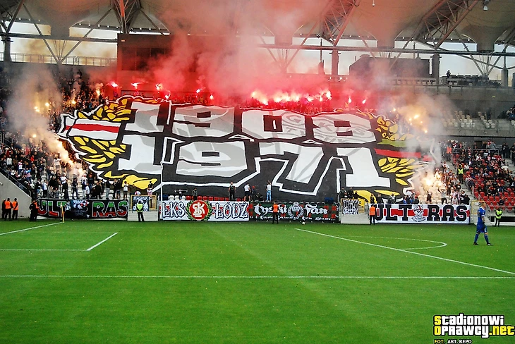 В І лиге тыхский «ГКС» приехал в Лодзь к «ЛКСу». Фанаты обеих команд разместились на одном секторе и подготовили перфоманс, посвященный своей згоде.