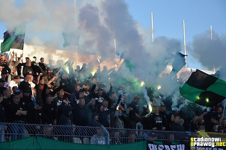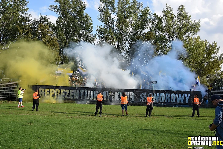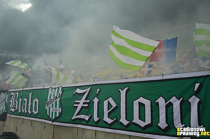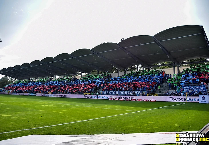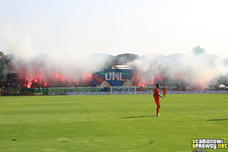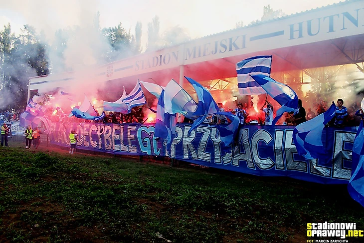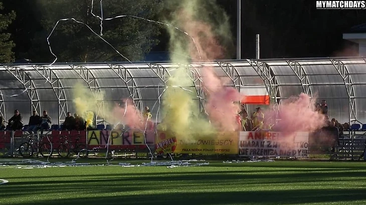 В І лиге в Новом Сонче встретились «Сандецья» и мелецкая «Сталь». Фанаты обеих дружин тоже разместились на одном секторе и использовали большое количество флагов для поддержки своих команд.