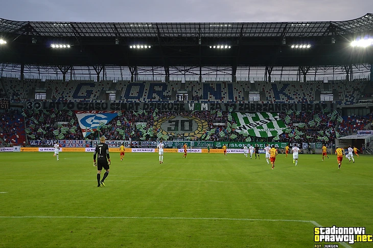 В еще одном кубковом противостояние сошлись «ГКС» из Ястшембе и «Пяст». У фанатов данных клубом между собой згода. Тяжело сказать, были ли на этом матче фанаты гостей, которые бойкотируют все матчи «Пяста». На секторе хозяев появились баннера гливичан, а под конец матч сектор осветила пиротехника.