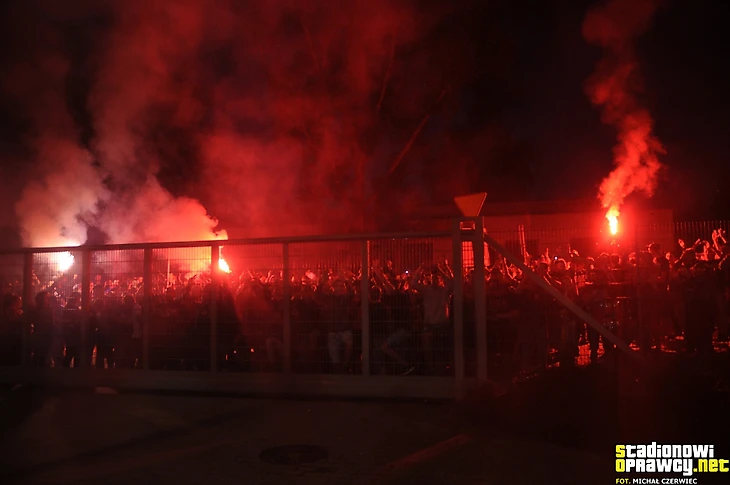 Гости привезли с собой в Легницу много флагов и тоже пожгли пиротехнику.