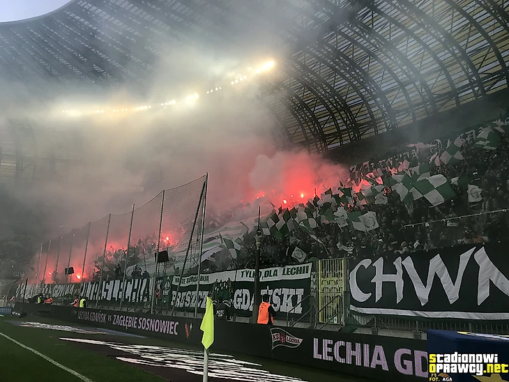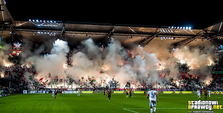 «Лехия» на домашнем матче против «Заглембе» неплохо пожгла пиротехники.