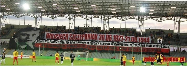 «Корона» встречалась с «Заглембе» из Сосновца. Хозяева продемонстрировали на матче патриотичную оправу. На баннере изображен 17-летний Войцех Шчепаньяк, который в 1944 году был арестован немцами и подвергался пыткам. Несмотря на все, Войцех проявил стойкость и не выдал немцам никакой информации. На баннере надпись: «Мамочка, они сказали мне, что если я выдам своих иди буду предателем, то они меня отпустят, но я отказался и сказал, что никогда этого не сделаю».
