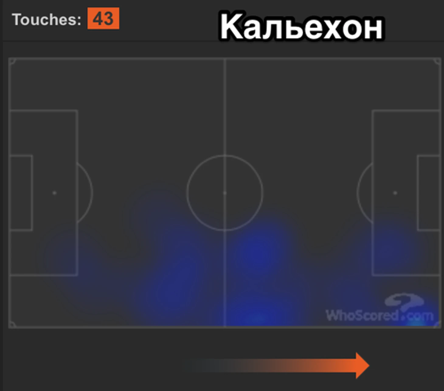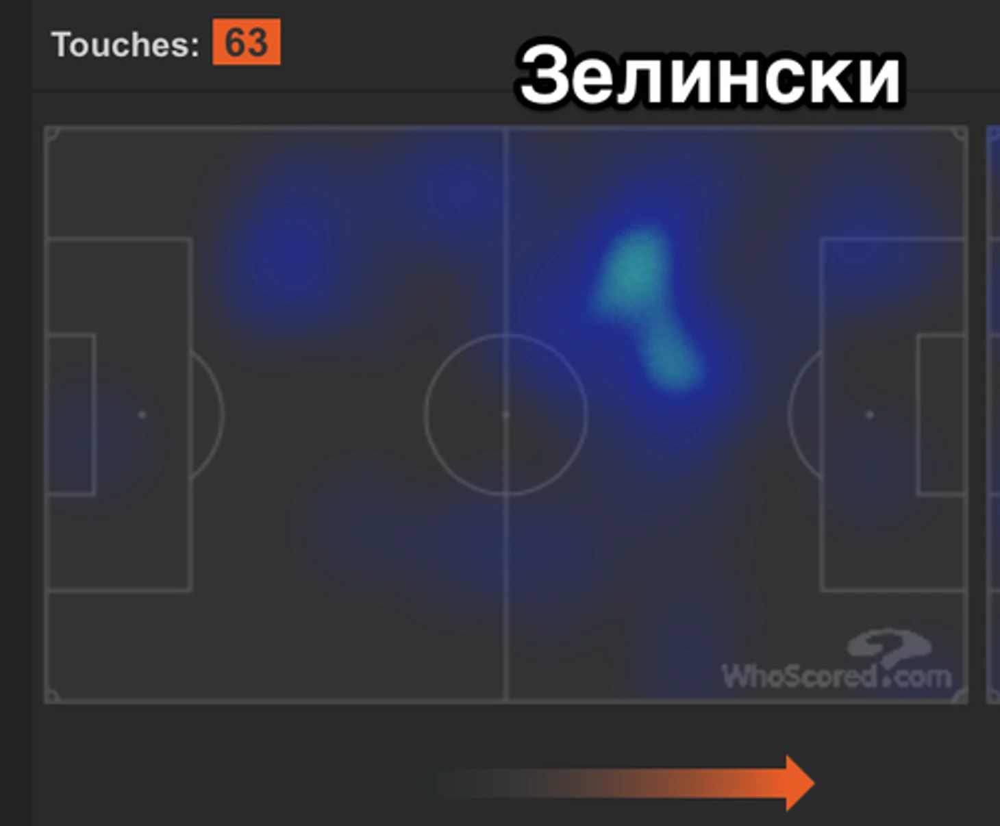 Если Кальехон играл больше, как Кальехон и редковато ходил в центр, то Зелински весь матч проводит как раз в центре, изредка врываясь по бровке