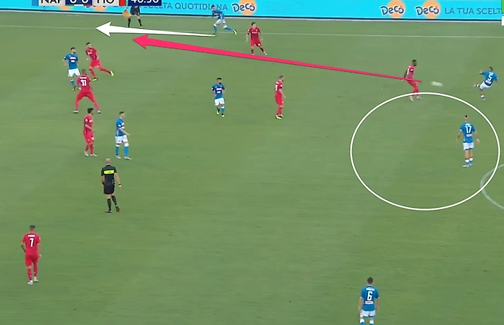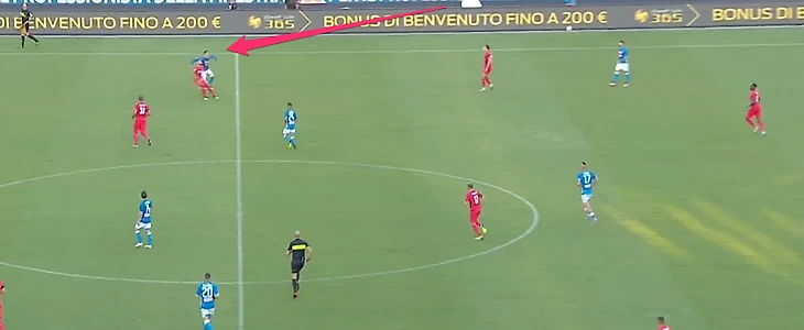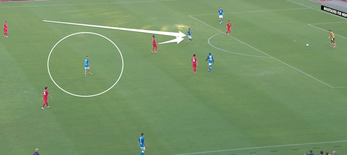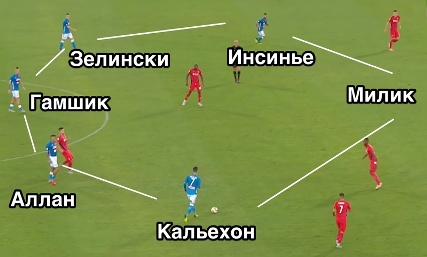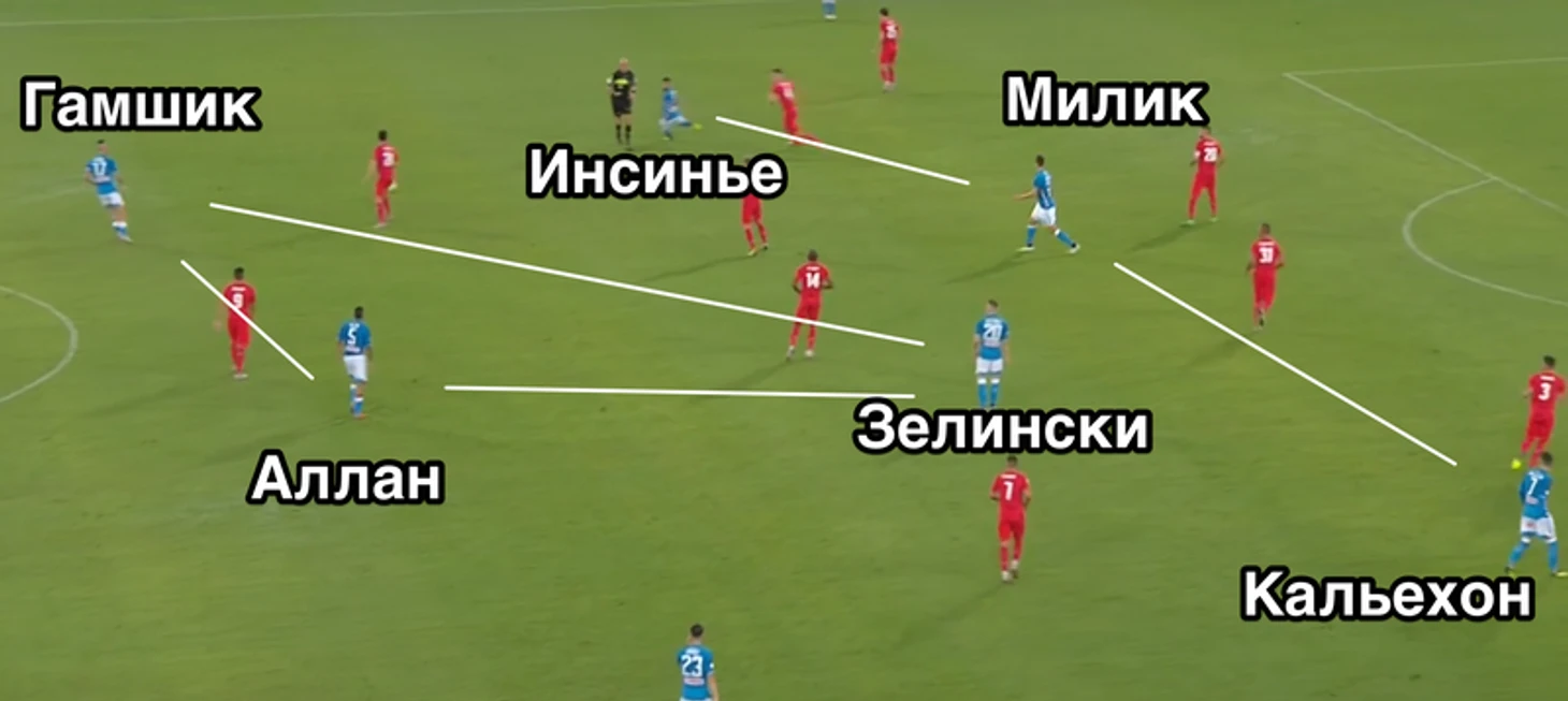 Гамшик хорошо засунул мяч на Милика, а тот прекрасно нашел забегание Инсинье. Хоть пас был и не идеальный, но он нашел своего адресата. Лоренцо очень хладнокровно решил эпизод