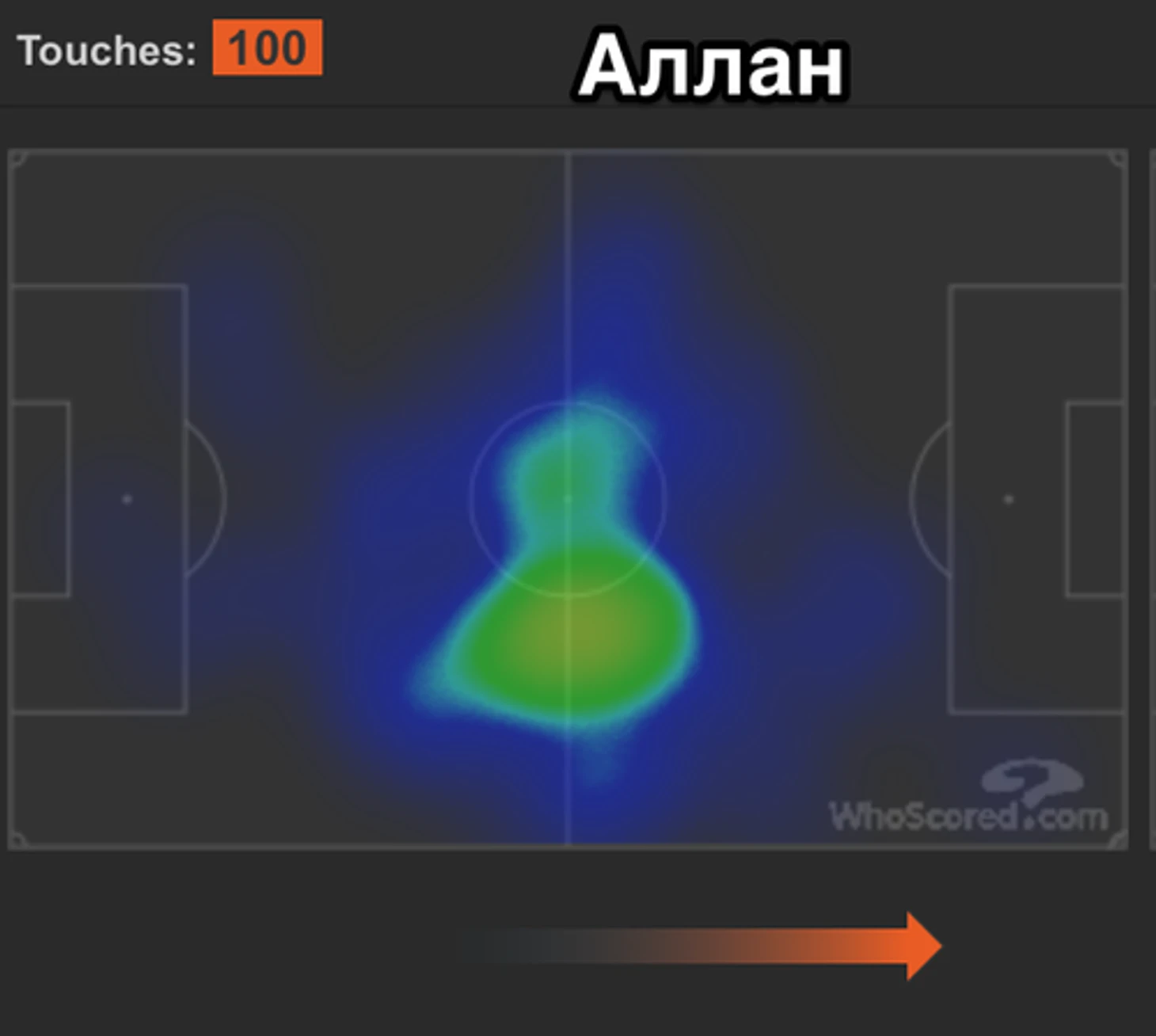 При этом, в таких эпизодах видно, что у Аллана действительно нет ограничений в плане обостряющих передач, эту обязанность не возложена на одного только Гамшика