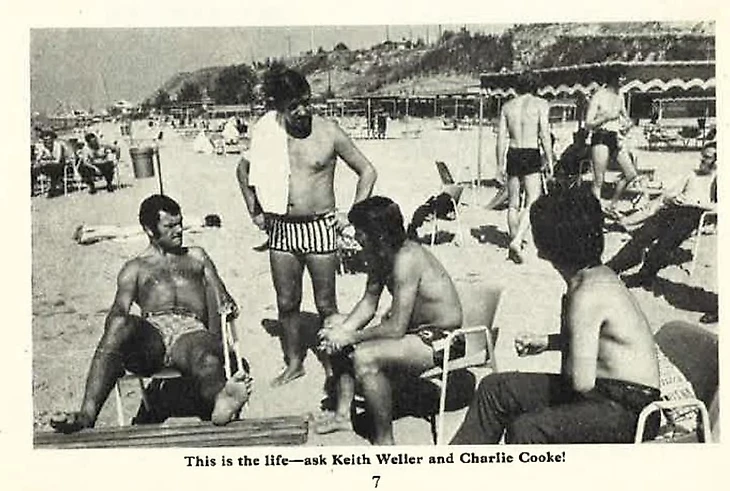 На фото Кейт Веллер (слева) и Чарли Кук (сидит в центре) отдыхают на пляже перед игрой