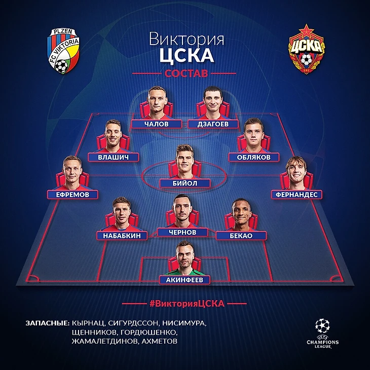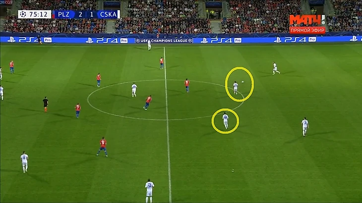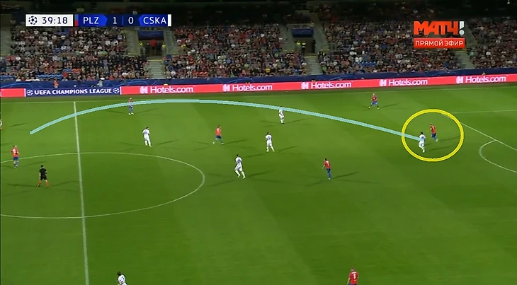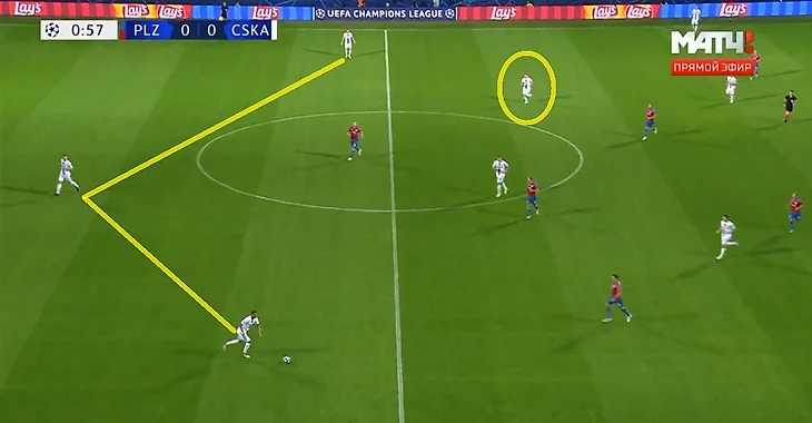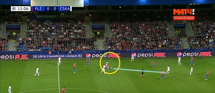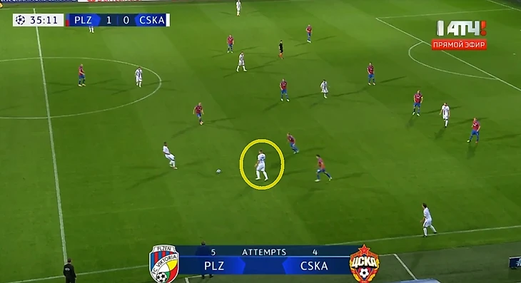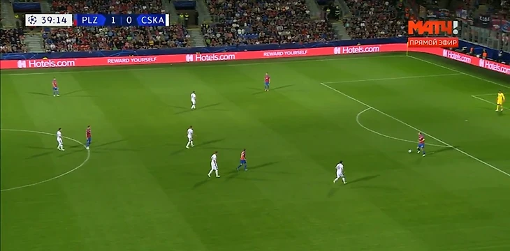 Выходит, у армейцев в центре поля оказался только один пасующий игрок, да и только с одной возможностью развития атаки. С первых минут матча московской команде не удавалось завладеть мячом, что вселяло уверенность в коллектив из Пльзени. Все это привело к передачам в стиле Куарежмы и к 2:0 после первого тайма.