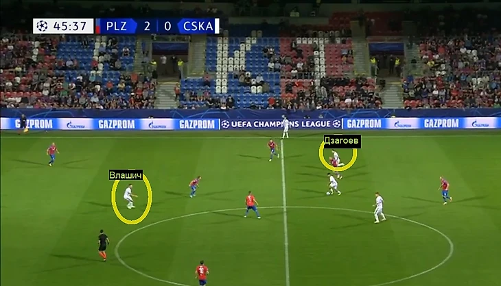 Пока Обляков распоряжался мячом в центре поля, Дзагоев и Влашич обеспечивали его предложениями в коридорах между полузащитниками соперника