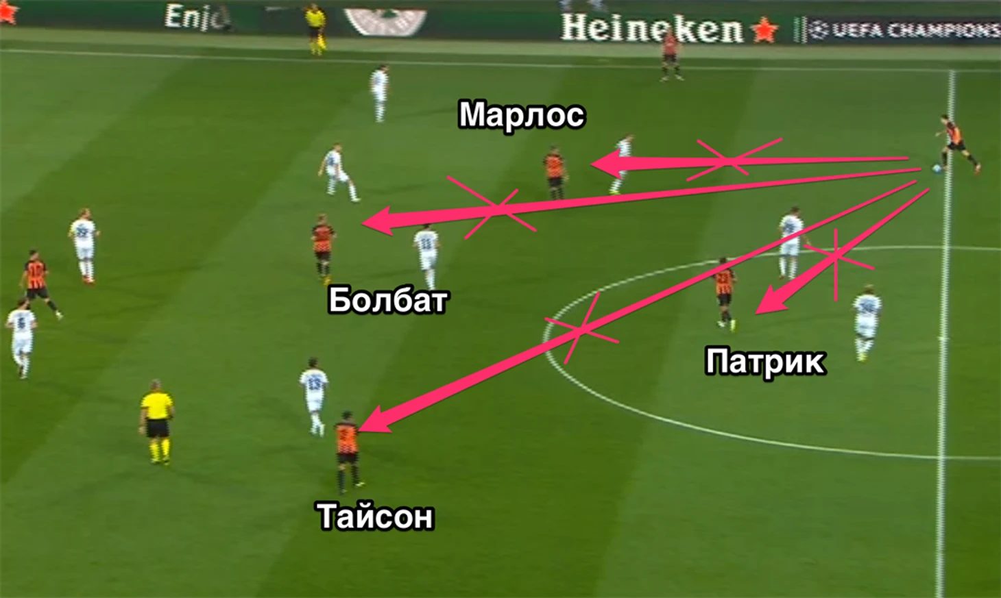 Не до конца понял, почему Шахтер в этом матче очень мало использовал такие маневры. Все таки, очень мало было эпизодов, в которых вингеров пытались найти ближе к бровкам. Как мы уже увидели, Марлос, Тайсон, Болбат больше ходили искать мяч около центрального круга. Ни в коем случае не считаю себя умнее Фонсеки, но жду следующих матчей Хоффенхайма... Тот же Ман Сити может наказать за такое.