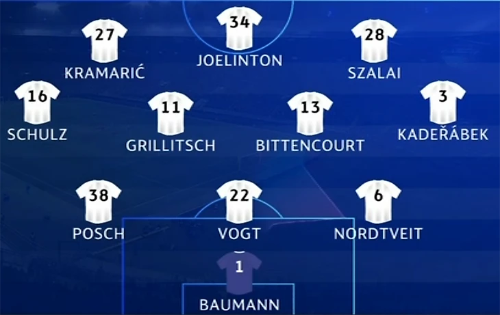 На самом же деле, Хоффенхайм, как минимум в защите, играл по схеме 5-3-2. Да и в нападении они играли так же. Здесь никаких сюрпризов от Нагельсмана не было.