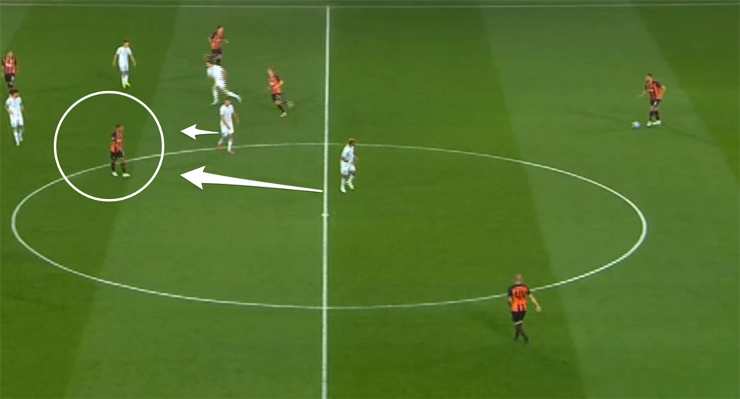 Играя в 5-3-2, Нагельсману нужно было решить главную задачу: как сделать так, чтобы один фулбек смог противостоять двум-трем реактивным игрокам Шахтера.