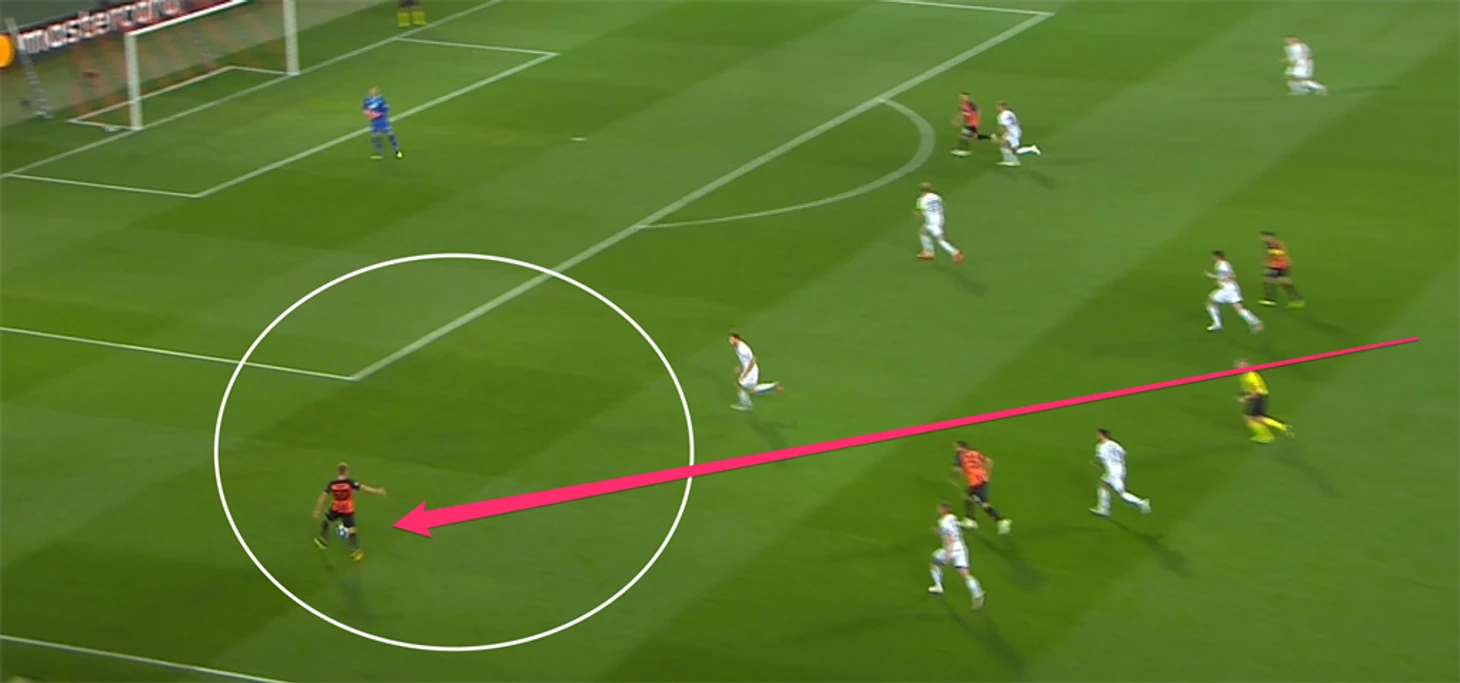 Вообще плохо жилось Алану Патрику. Кроме того, что он стал одним из аутсайдеров по количеству передач (41), половина его передач была назад (17). Вот кто действительно был принесен в жертву Хоффенхайму, так это 21-й номер Шахтера. Раз за разом он оказывался в ситуациях в стиле этих: