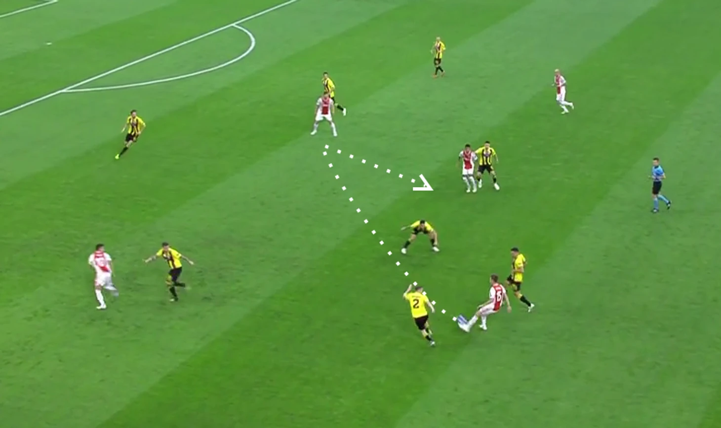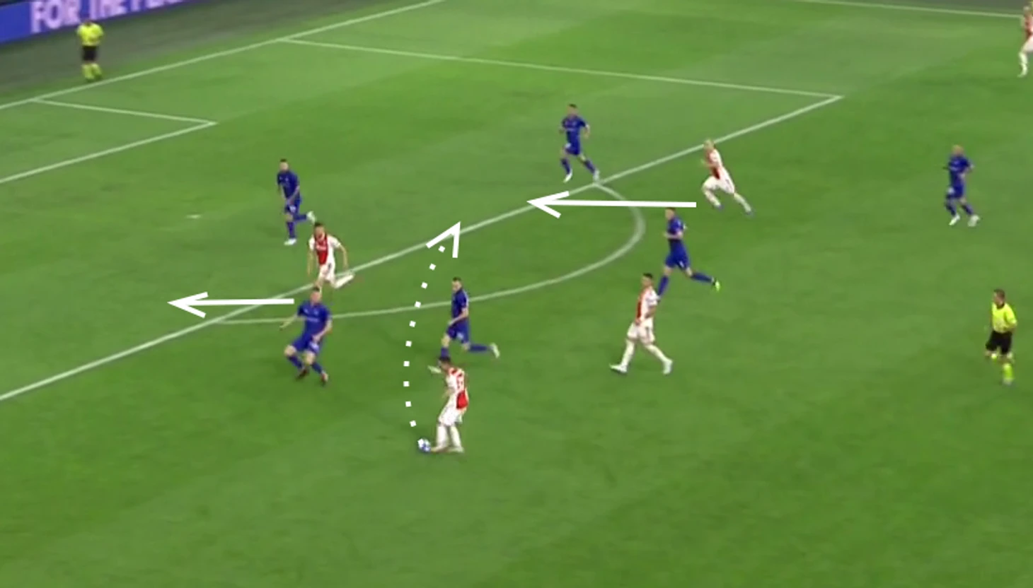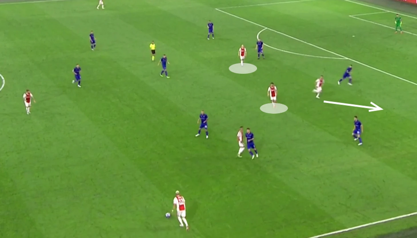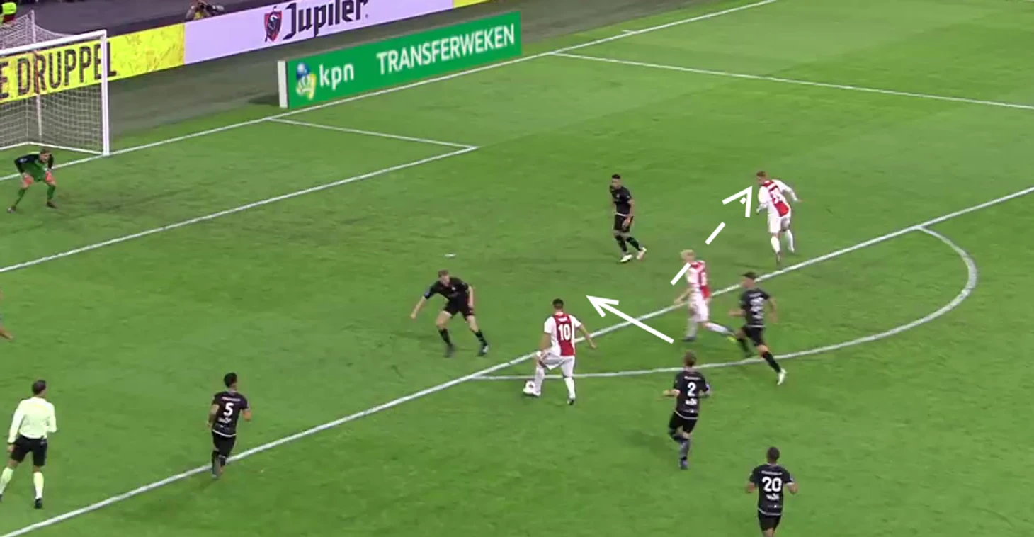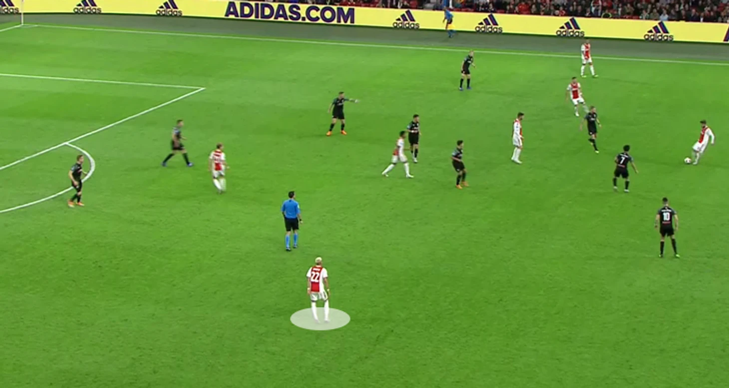 На позиции “под нападающим” у тех Хага есть выбор из двух абсолютно не похожих игроков - бразильца Нереса и Донни ван де Бека. Что интересно, ни один из них никаким диспетчером до этого сезона не являлся - Нерес играл на позиции вингера, а ван де Бек чаще выходил в полузащите. Казалось бы больше подходит на эту позицию Тадич, но у тренера амстердамцев совсем другие планы. Выбор между Нересом и ван де Беком даёт тен Хагу необходимую вариативность, а за острые передачи в Аяксе в основном отвечают другие люди.