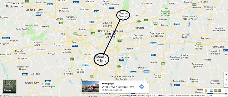 Открываем карты и видим, что Монца - это пригород Милана, один из крупнейших городов в Ломбардии, расположенном на реке Ламбро. До "столицы моды" 15 минут езды на машине. Пустяки.