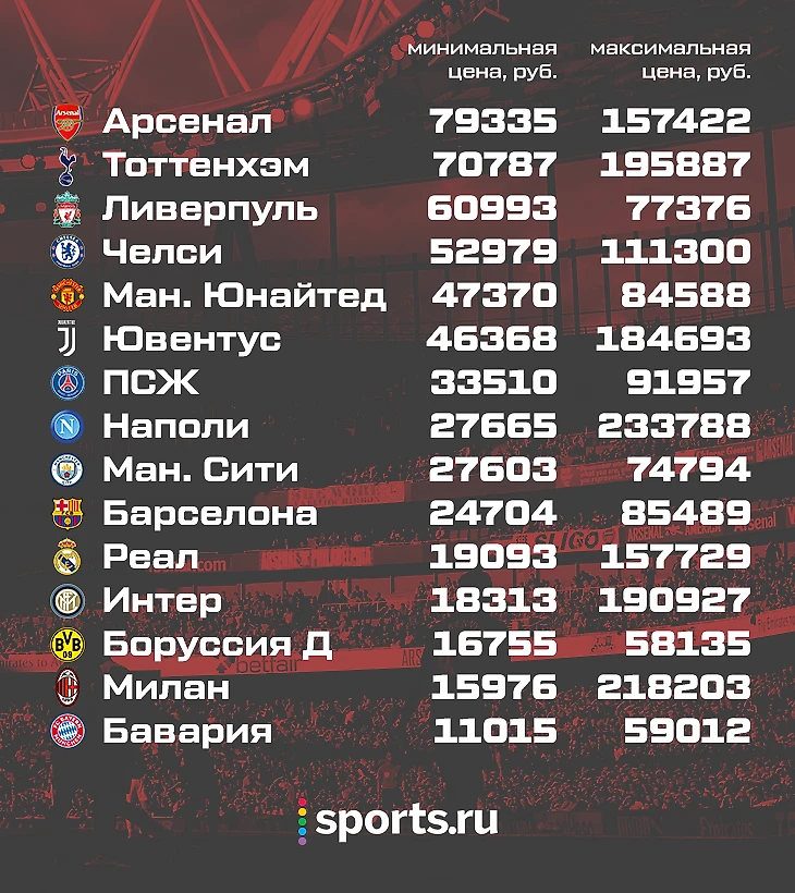 – Целый год ходить на футбол дороже всего в Лондоне. «Арсенал» традиционно предлагает самые дорогие билеты в премьер-лиге с переезда на «Эмирейтс Стэдиум» в 2006-м. Рядом держится «Тоттенхэм» – при этом клуб начал второй сезон на «Уэмбли», а с переездом на новый стадион возникли проблемы