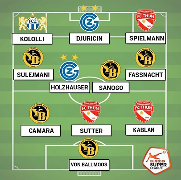 «Тун»: Февр; Гларнер, Зуттер, Гелми, Каблан; Хедигер, Штилльхарт; Тосетти, Карден (85’ Фаткич), Шпильманн (70’ Саланович); Зоргич (83’ Феррейра)