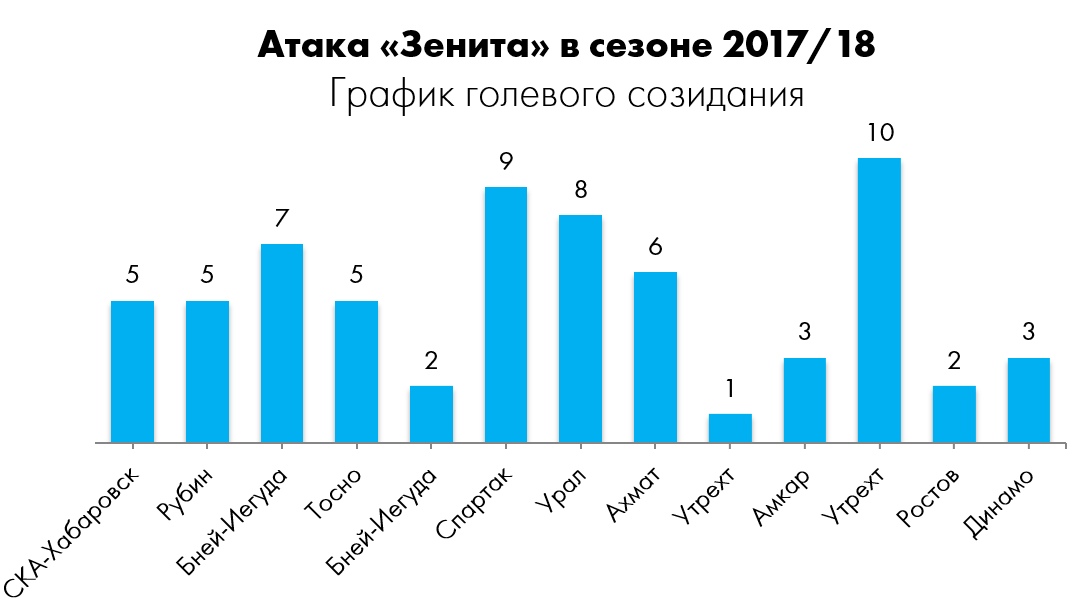 Но гораздо важнее личных рекордов то, что отладка командных взаимодействий в «Зените» идет полным ходом. В матче с «Локомотивом» команда сумела провести сразу 6 острых многоходовок (при трёх голевых) с участием 4-х и более игроков в активной фазе. Для сравнения в памятном матче с минским «Динамо» таковых было только три, да и в предыдущих сезонах подобных примеров коллективного творчества не было вовсе (максимум при Манчини – 5 острых многоходовок в матче первого круга с «Уфой»).
