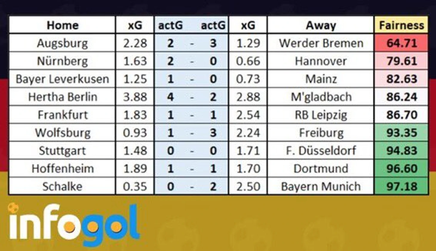 Оценка справедливости результатов 4-го тура Бундеслиги от Infogol
