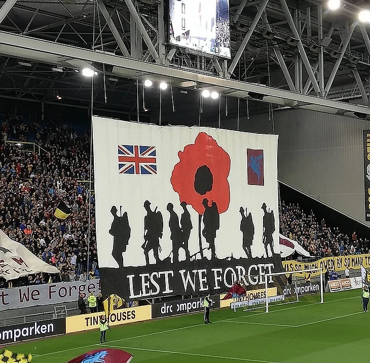 Кроме того, на таких играх можно увидеть множество баннеров и плакатов в честь участников битвы за Арнем. Главный лозунг дня - "Lest we forget" ("Чтобы мы не забыли").