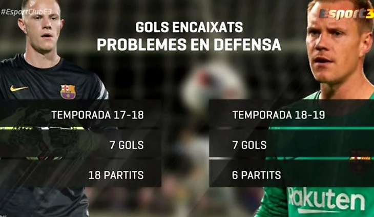В этом сезоне каталонцы в примере, по итогам 6 туров пропустили 7 мячей. У МАТС'a лишь 2 сухих матча, у лидера чемпионата Серхио Асенхо (Вильярреал) 4 сухих матча. Каталонцы дважды пропускали от Уэски, Жироны и вчера от Леганеса и один раз от Сосьедада. И являются худшей командой топ -6 по пропущенным голам.. Для сравнения в прошлом сезоне 7 мячей Барса пропустила лишь после 18 туров и являлась лидером по этому показателю, пропустив меньше всех, не только в Европе, но в и в мире. Так же в прошлом сезоне в Ла Лиге Тер Стеген пропустил на 13 мячей меньше, чем ожидалось, это был 3-й результат в топ -5 после Облака (14) и Де Хеа (15). После аномального прошлого сезона, пока в этом сезоне Тер Стеген пропускает согласно прогнозам.