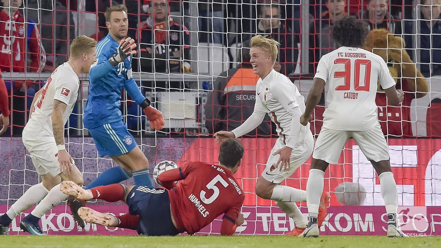 На «Альянц-арене» случилась главная сенсация 5-го тура немецкой Бундеслиги. Бессменный чемпион Германии мюнхенская «Бавария» не сумела одержать победу в баварском дерби. Соседи из «Аугсбурга» очень уверенно провели матч. В первом тайме гости сумели выстоять и сыграть нулевую ничью, а во втором тайме, даже несмотря на пропущенный мяч в самом начале второго тайма, не бросили играть, и на 87-й минуте 19-летний Феликс Гетце, который появляется в этом сезоне всего лишь второй раз на поле, сумел забить такой важный мяч для «Аугсбурга»! Также стоит отметить, что команды проводили 15-й матч против друг друга и это первый ничейный исход, который был зафиксирован в данном противостоянии. Для «Баварии» обычно соседи являлись удобным соперником, которых они обыгрывали 12 раз из 15, поэтому главная причина поражения – недооценка соперника. Другой проблемой стала нереализация моментов. Экспериментальная пара форвардов Вагнер-Гнабри так и не сумела отличиться в матче, и оба были заменены по ходу игры, а главный джокер команды из Мюнхена Роберт Левандовский в этой встрече остался в запасе.