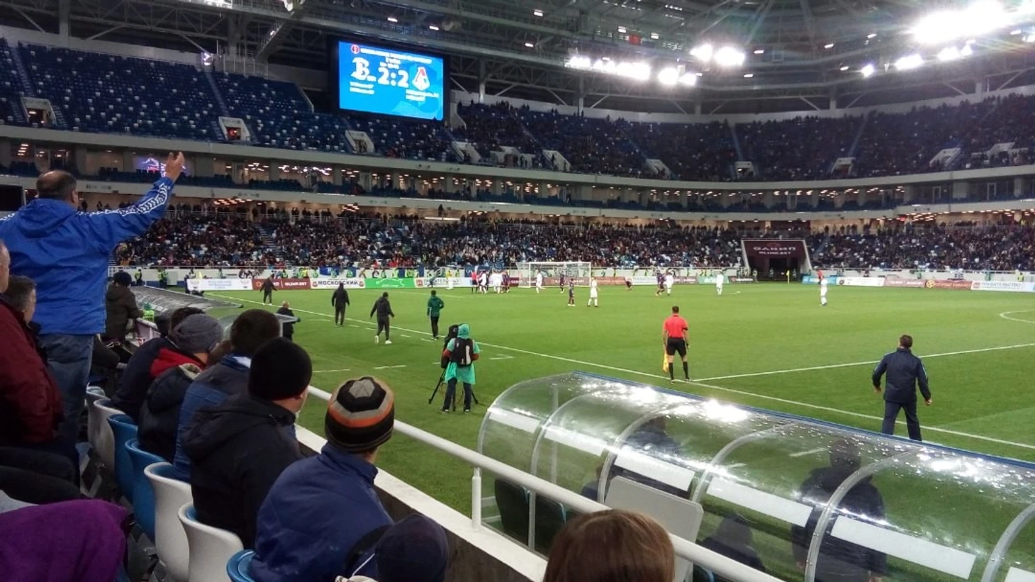 Внутри была некоторая неразбериха, много людей искали свои места и бегали туда-сюда. Такое впечатление, что добрая половина болельщиков пришла на стадион впервые, как и мы. Конечно, и старый стадион был уютным, но тут совершенно другой уровень. Зато со старого стадиона было удобнее добираться до дома, но это уже мелочи.