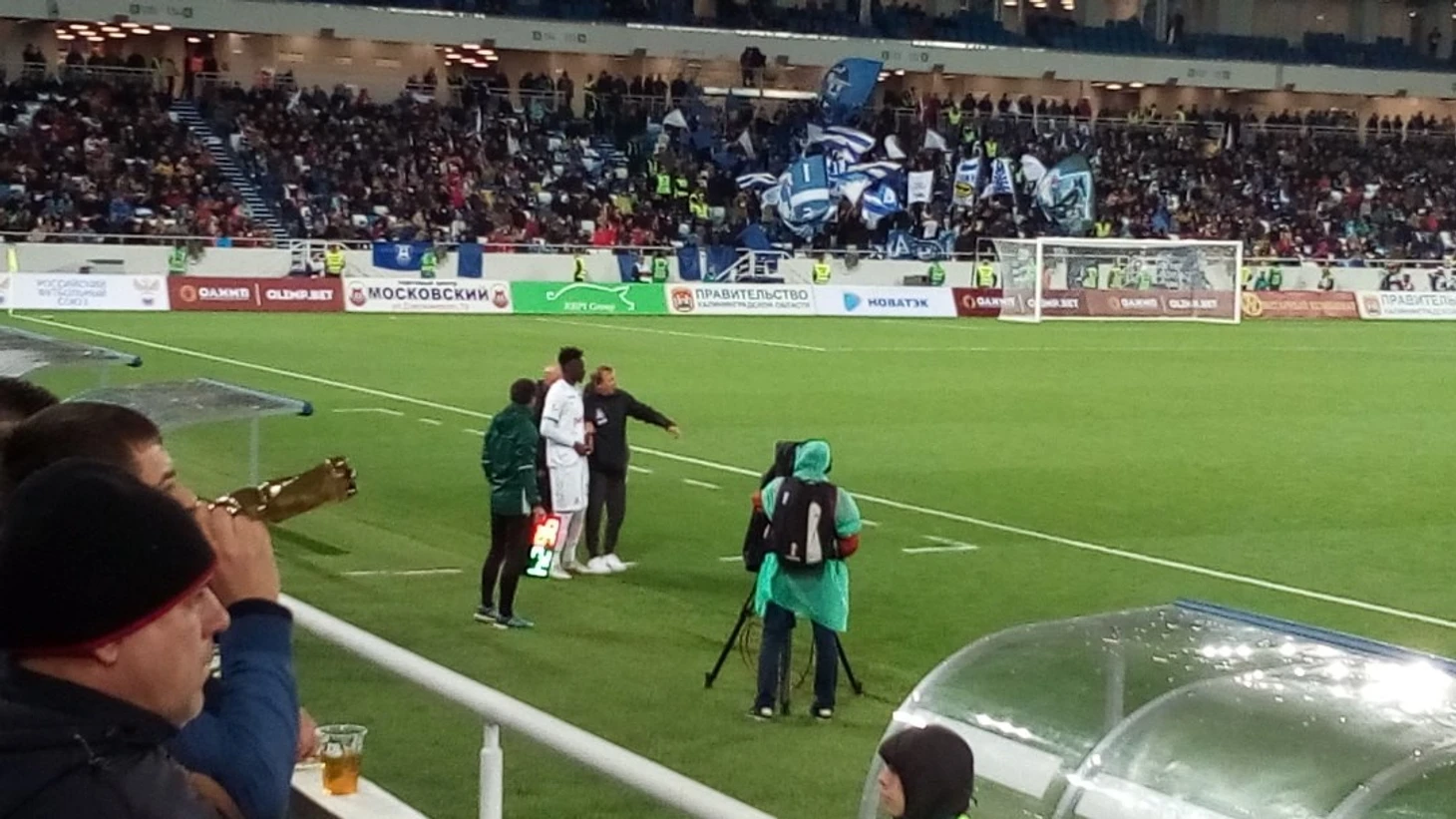 Болельщики, приехавшие из Москвы и некоторые местные были на отдельном секторе на верху. И их было отлично слышно.