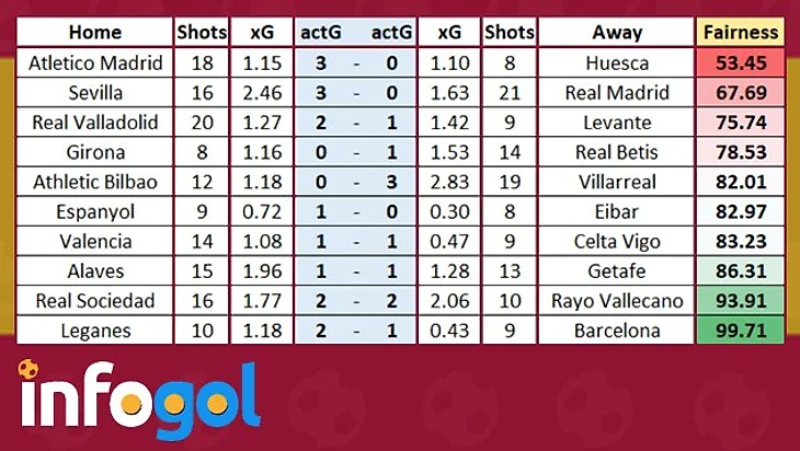 Оценка справедливости результатов 6-го тура Ла лиги от Infogol