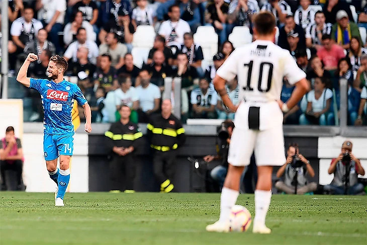 Расстановка 4-4-2, где Кальехон занял правильную позицию крайнего полузащитника, а Зелиньски располагался ближе к центру, освободив зону для выдвинувшегося вперед терцино. Высокий прессинг, в котором участвовали до шести футболистов «адзурри». Двое форвардов – Инсинье и Мертенс, которые постоянно менялись местами, запутывая защитников. Численное превосходство в центре за счет лишнего игрока. А еще ретро-элементы персональной опеки: Гамшик приглядывал за Дибалой, Аллан – за СR7, а Мертенс – за Пьяничем. Все это привело к тому, что хозяева стали совершать немыслимое число потерь. Вплоть до финального свистка по этому показателю «Наполи» так и не смог обойти «Ювентус».