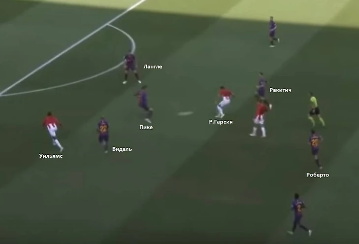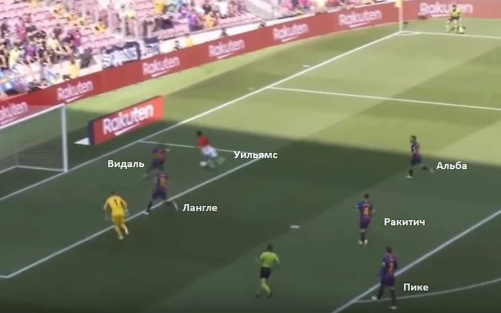 Иньяки легко обыграл тер Штегена, но «Барселону» спас неуступчивый характер Видаля. Чилиец продолжил сражаться до конца, вынудил форварда соперника сместиться на фланг и загасил эту атаку. Буквально одного касания не хватило Уильямсу, чтобы открыть счет уже в этом эпизоде.
