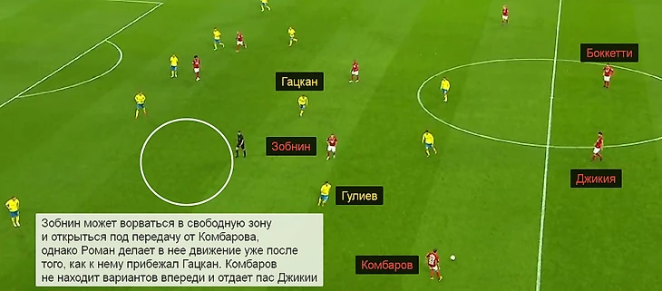 У левого защитника часто было несколько адресатов для паса, однако либо они были не слишком перспективными для развития атаки, либо Комбаров выбирал не лучший вариант, и «Спартак» терял мяч.