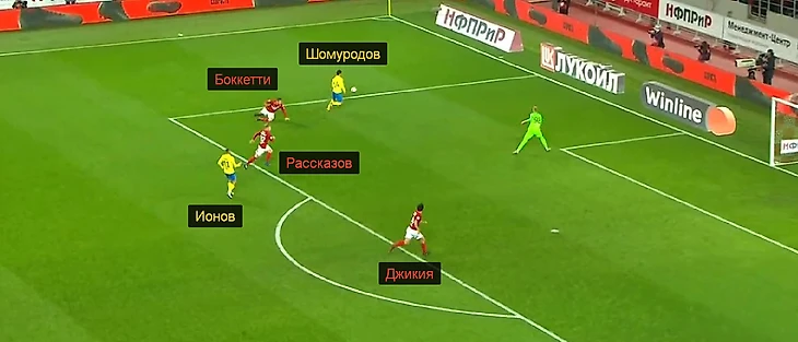 Москвичи не успели в каждом микроэпизоде: Фернандо не успел вступить в борьбу с Зуевым, а потом трусцой побежал на свою половину (тут ничего нового), Зобнин не успел помешать Гацкану сделать передачу, Джикия не успел выдвинуться на Кьяртанссона, который откинул мяч Зуеву, Зуев проткнул мяч мимо Боккетти, а Комбаров не успел за подключением Калачева. Столкнувшиеся в спартаковской штрафной Максименко и Рассказов – как итог голевой атаки «Ростова». Опоздали все.