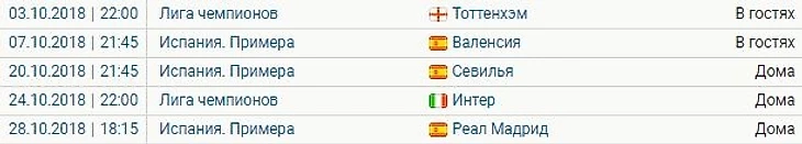 Октябрь начнется для "Барсы" визитом в Лондон, где их будет ожидать "Тоттенхэм" Почеттино. В принципе, это должен быть самый сложный матч для сине-гранатовых на групповой стадии в этом розыгрыше Лиги Чемпионов. После этого испытания "Барсу" ждет выезд на "Месталью" и игра с "Валенсией", которая обычно доставляет немало хлопот Вальверде.