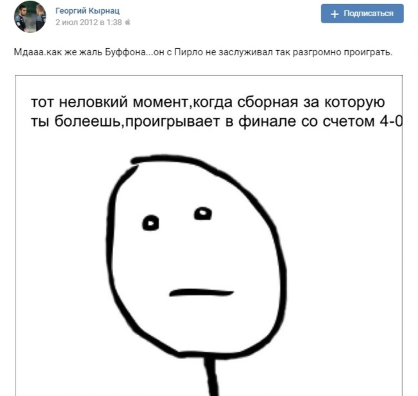А это Кырнац опубликовал после финала Евро-2012. Тогда Испания размазала Италию.