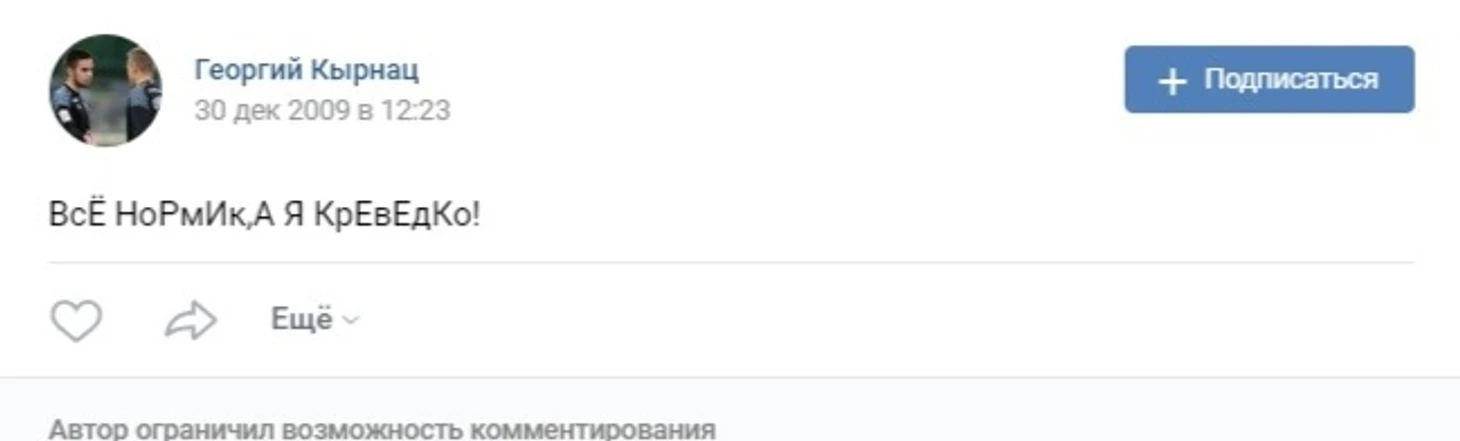 В матче с «Реалом» после удаления Игоря Акинфеева на поле вышел 20-летний вратарь Георгий Кырнац. Он не пропустил, ЦСКА выиграл 1:0, а мы порылись в его соцсетях и нашли много веселого.