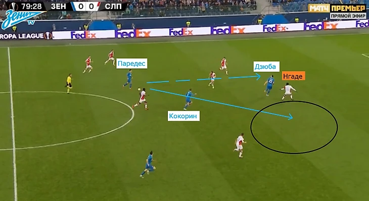 Последнего, к слову, можно назвать скрытым героем матча – Ерохин (!) был важнейшим звеном во всех четырех остроатакующих цепочках «Зенита», и голевая атака началась именно с его подбора и своевременной передачи на аргентинца.