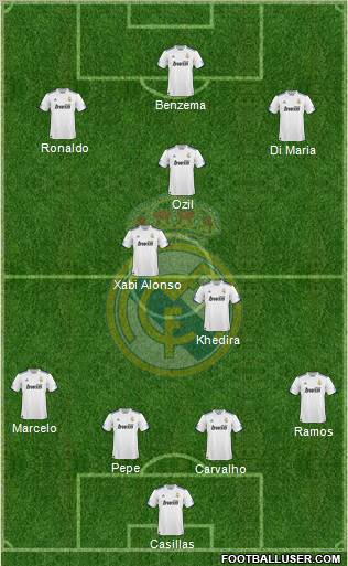 Думаю, изменений в расстановке не произойдёт. По-прежнему будем играть с одним чистым нападающим. Им скорей всего будет Бензема, так как набрал фантастическую форму. По краям будут располагаться Роналду и Ди Мария. Они как обычно будут смещаться в центр и на противоположный фланг. В опорной зоне всё понятно, Хаби Алонсо чуть выдвинут вперёд, а Сами Хедира или Ласс будут заниматься оборонительными функциями. После того как Шахин поправится, он будет подменять Алонсо. Не исключено, что они будут выходить в паре. В защите всё ясно. Марсело слева, Пепе и Карвальо в центре, так как альтернативы им пока нет, и Рамос на своём правом фланге. Фабио Коэнтрау может подменять Марсело. А на воротах как всегда Касильяс.