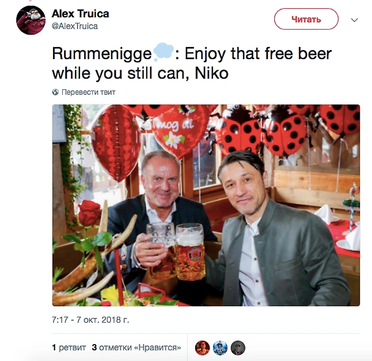 «Румменигге: «Наслаждайся этим бесплатным пивом, пока можешь себе это позволить, Нико»