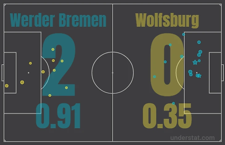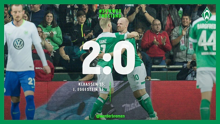 Поначалу волкам удавалось контролировать игру и бременцам не удавалось развернуться. Все изменилось после гола Классена. Хозяева почувствовали себя увереннее, однако до самого конца матч не был легкой прогулкой, моменты возникали у обеих сторон.