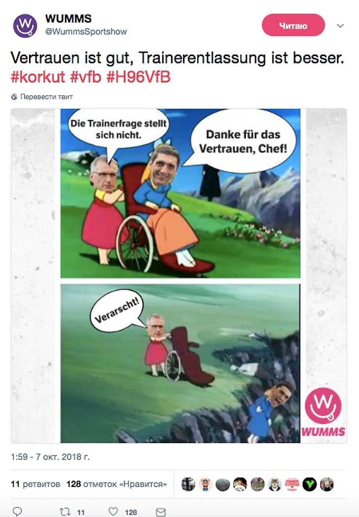На следующий день после матча последовала первая тренерская отставка в Бундеслиге в этом сезоне - руководство «Штутгарта» уволило Тайфуна Коркута. Это лишний раз показывает, как быстро все меняется в этой жизни - только вчера ты был спасителем, а сегодня тебя уже вышвыривают за дверь. Впрочем, такова тренерская доля.