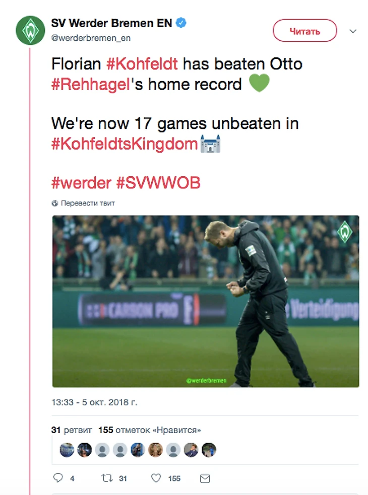 «Флориан Кофельдт побил домашний рекорд Отто Рехагеля. Мы не проигрываем в королевстве Кофельдта уже 17 игр подряд!»