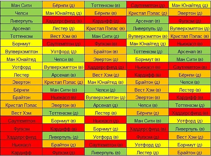 Из второй пятерки неплохой календарь у Борнмута, в первую очередь обращаем внимание на атакующих игроков Вишенок. Кинг, Уилсон, Фрэйзер и Брукс - главные претенденты на попадание в ваш состав. Также симпатичный график у Уотфорда, и об возвращении в состав Холебаса и Роберто Перейры придётся задуматься.